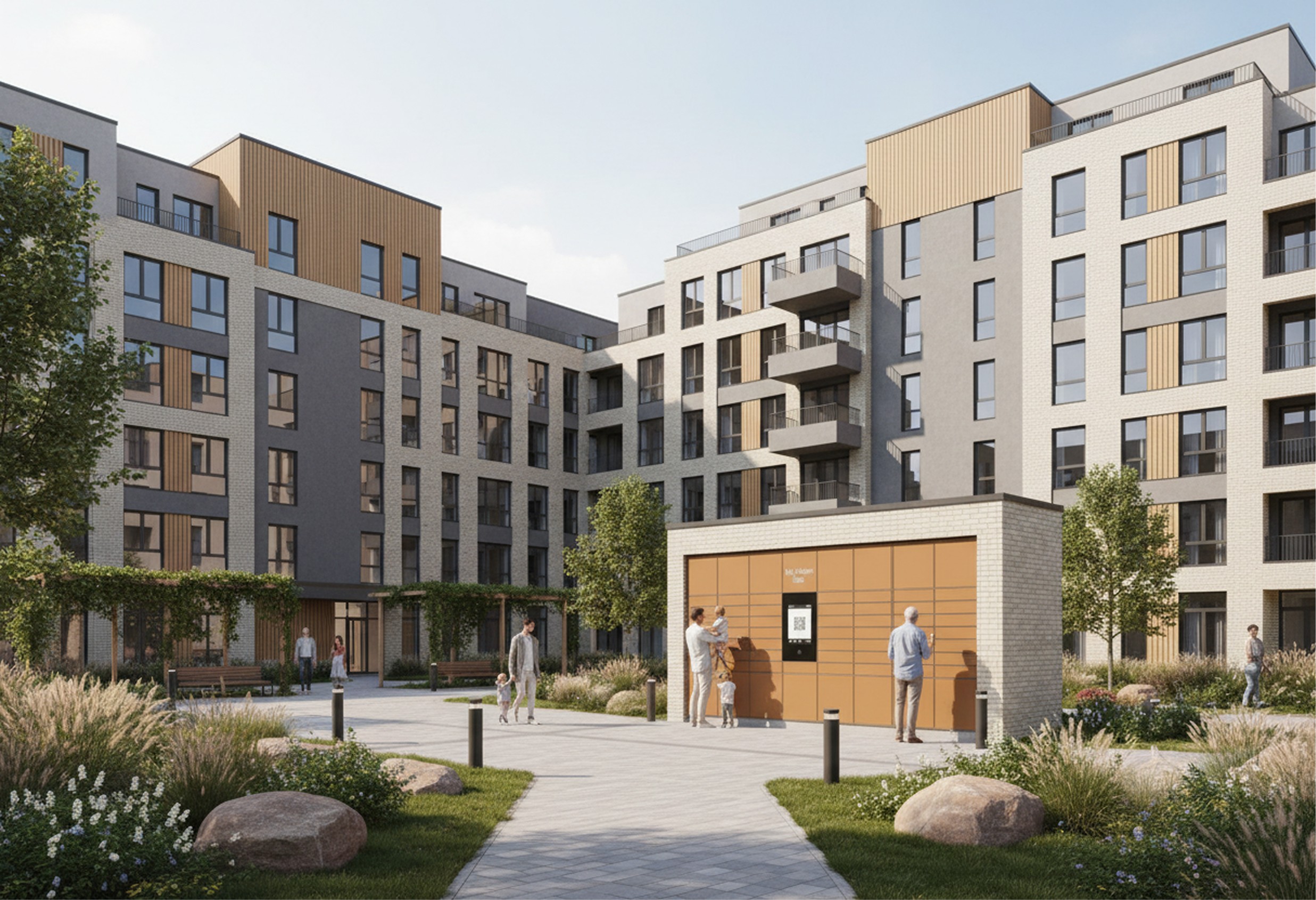 Die zentrale Paketstation ersetzt Paketstapel im Treppenhaus, reduziert Haftungsrisiken und sorgt für einen gepflegten ersten Eindruck bei Mieter:innen und Besuchenden.
