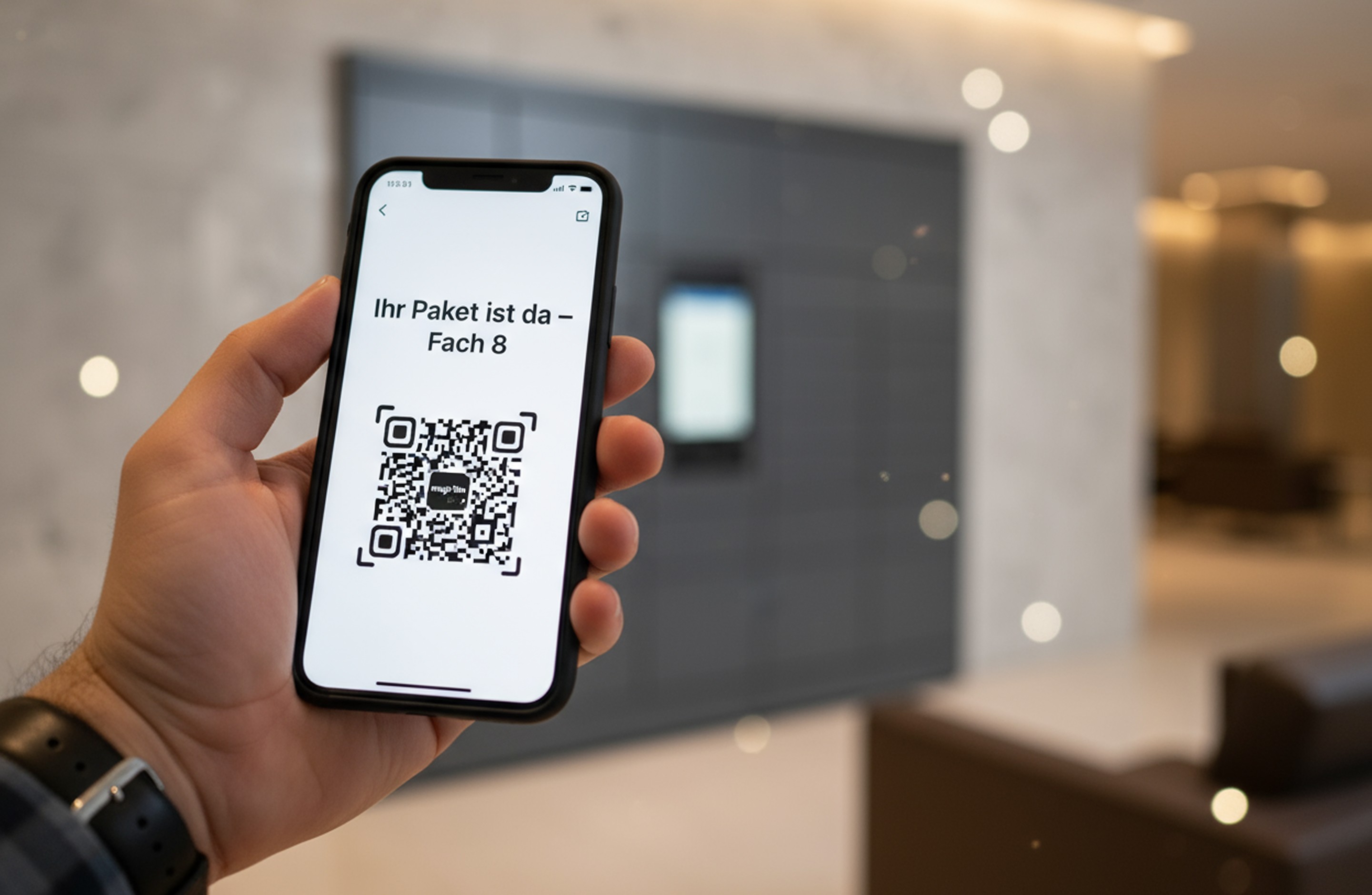 Bewohner:innen erhalten einen digitalen Abholcode und holen Pakete rund um die Uhr in Sekunden ab – unabhängig von Zustellzeiten, Nachbarn oder Filialöffnungen.